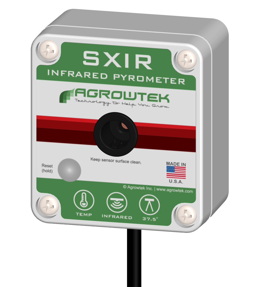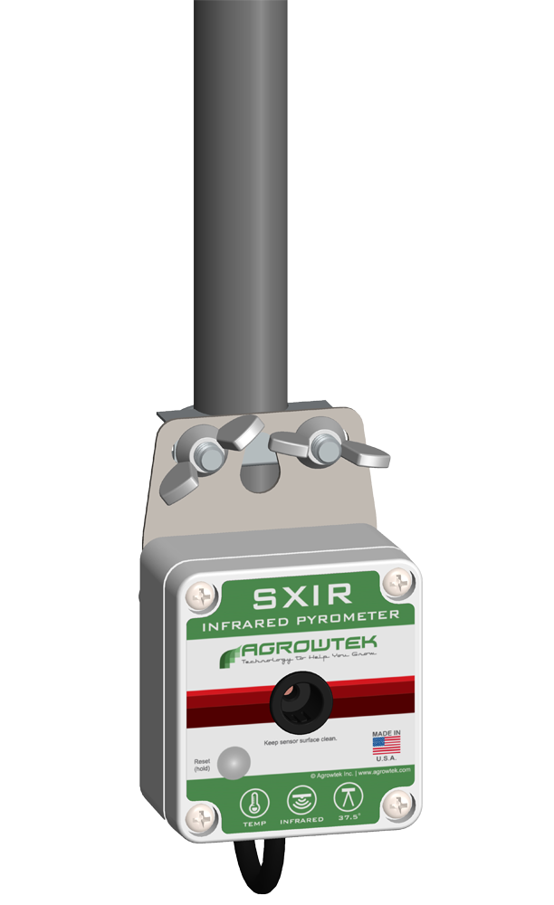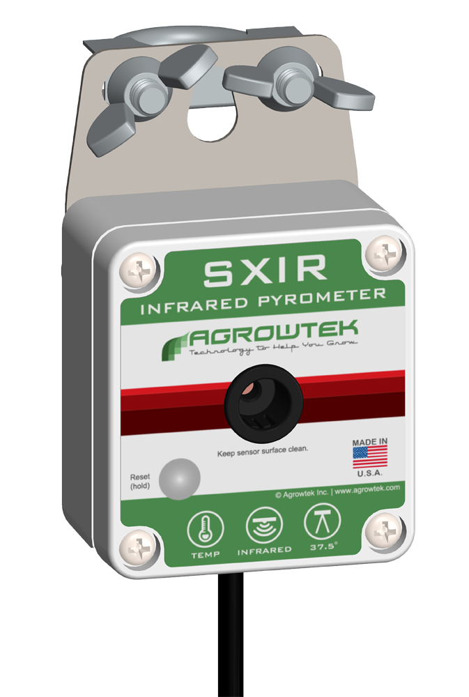 DescriptionSXIR Infrared Pyrometer is a precision non-contact IR surface temperature sensor. Featuring the same quality sensors as the PLIR™ sensor that is integrated into SXC climate sensors. Rugged design and low cost allow the sensors to be permanently mounted in the growing environment. Locate the sensor above canopy, in tiered racks, or even aimed at equipment that you want to monitor for temperature. A 37.5 degree sensing angle gives the sensor flexibility when selecting a mounting positioning. Housed in a weather resistant enclosure for indooor mounting. Includes a stainless steel bracket for mounting on a standard 1/2" EMT/PVC conduit pole or standard tripod mount. Compatible